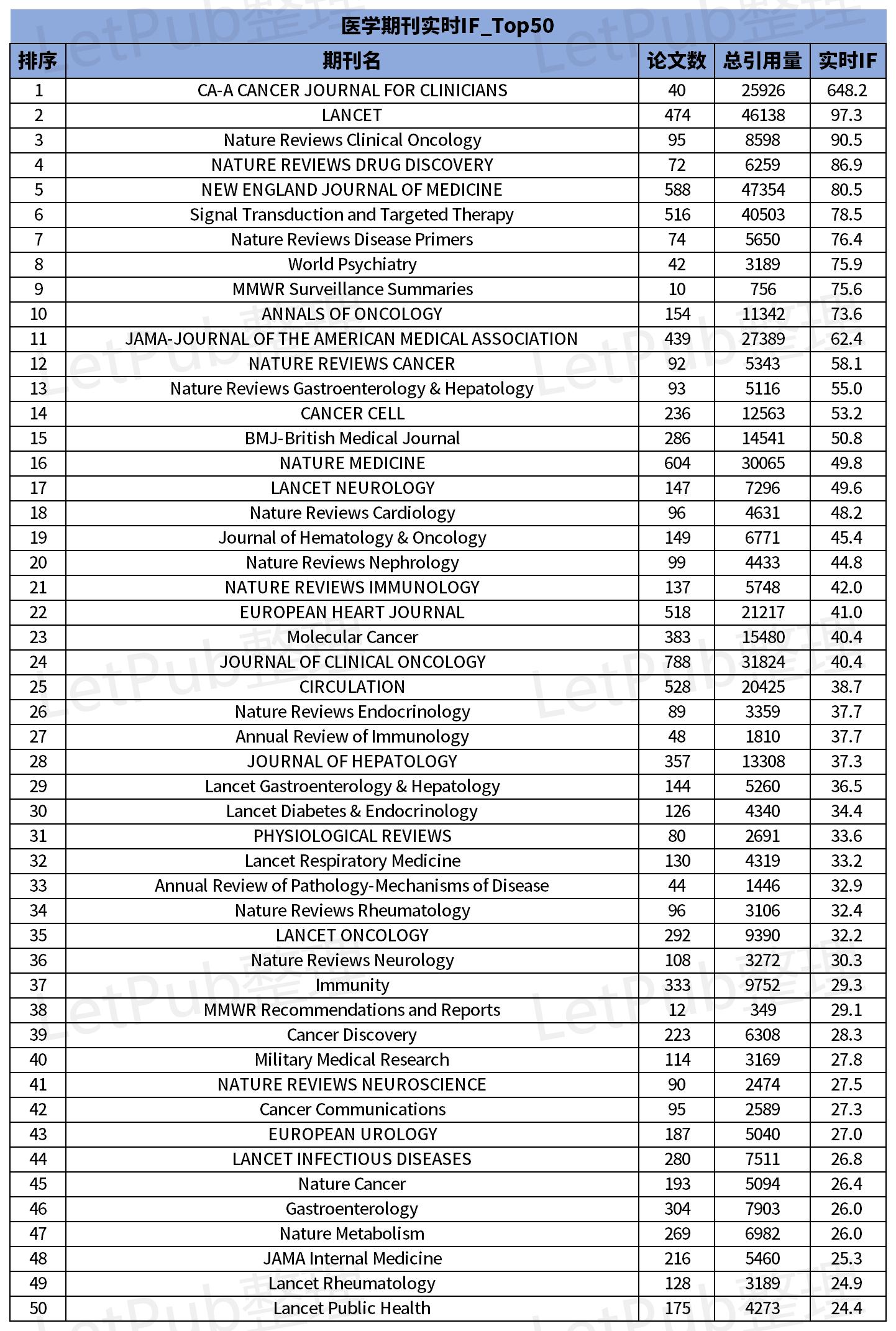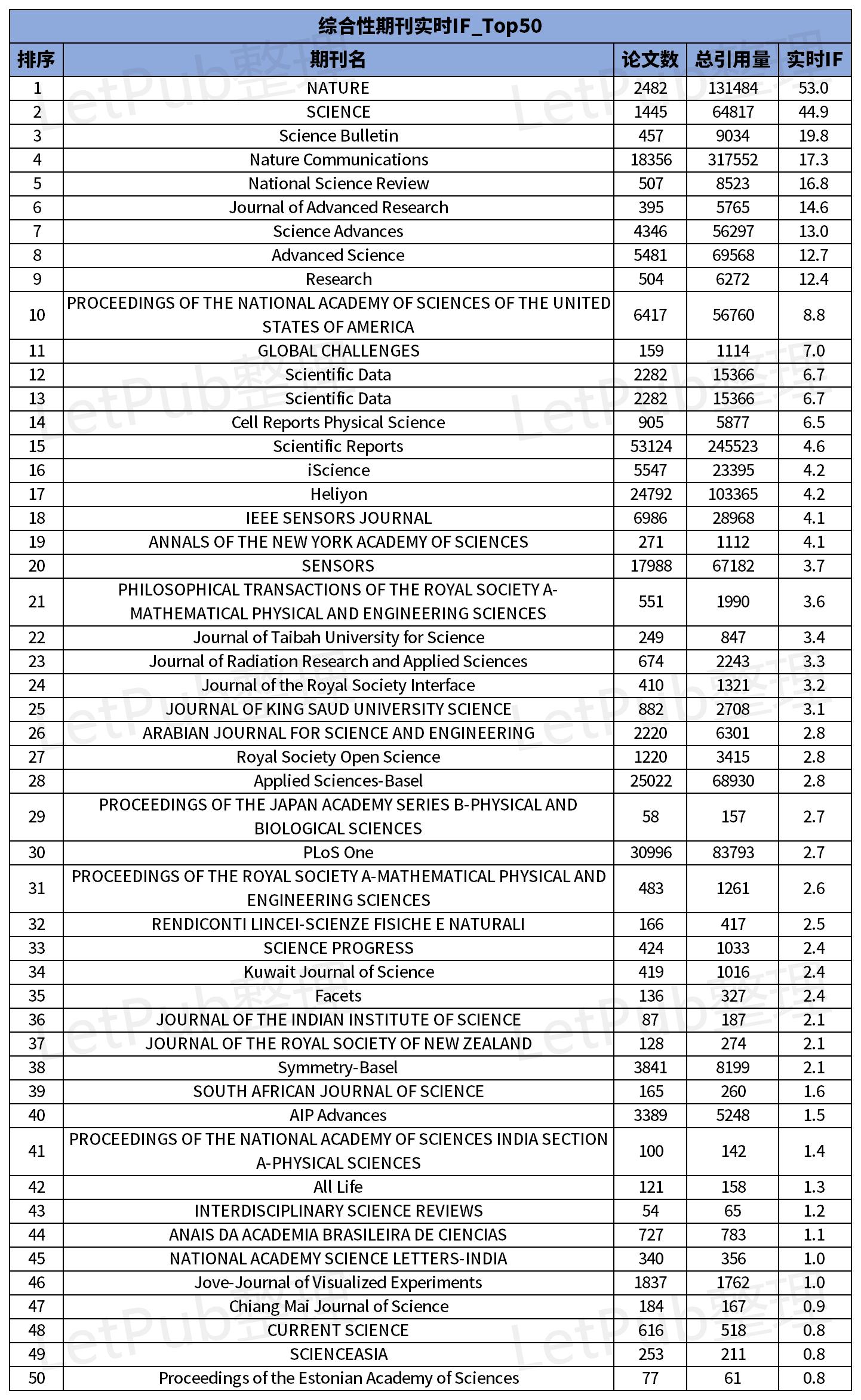 更多SCI、SSCI、AHCI等期刊的实时影响因子(IF)可在最新SCI期刊影响因子查询及投稿分析系统中搜索期刊名或ISSN号,即可查询获知。
