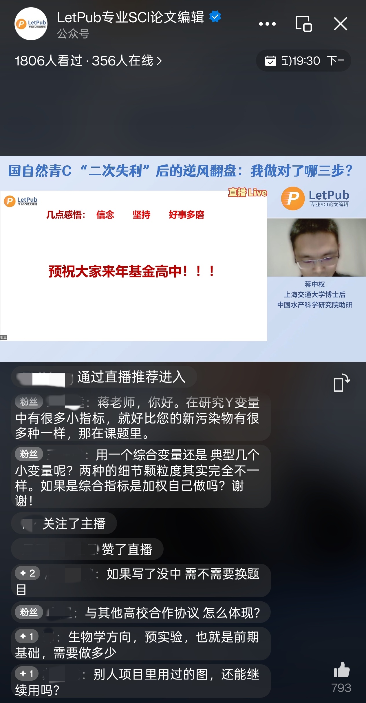 本次LetPub 特邀 2025 年国自然青年项目C类获得者、上海交通大学博士后蒋中权老师,带来一场干货满满的实战分享。他将用亲身经历告诉你:如何通过败局复盘 + 函评意见解读 + 精准修改,让申请书“越改越有分”。