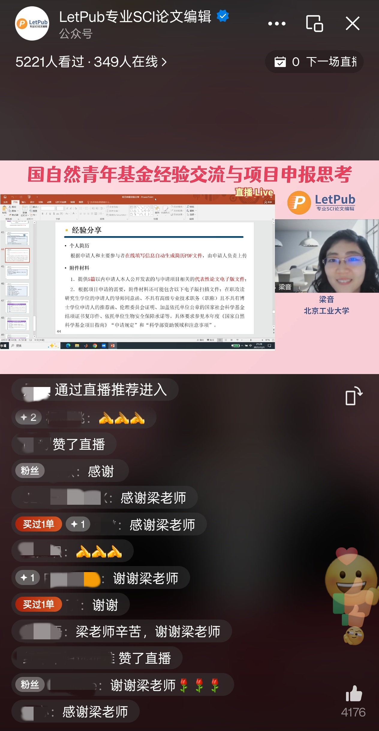 为帮助广大科研人员应对申报过程中可能遭遇的问题,LetPub精心策划了《国家自然科学基金申报攻略》系列线上辅导讲座。自2023年11月以来,我们已成功举办百余场线上免费直播,吸引了100万+名听众,反响热烈。