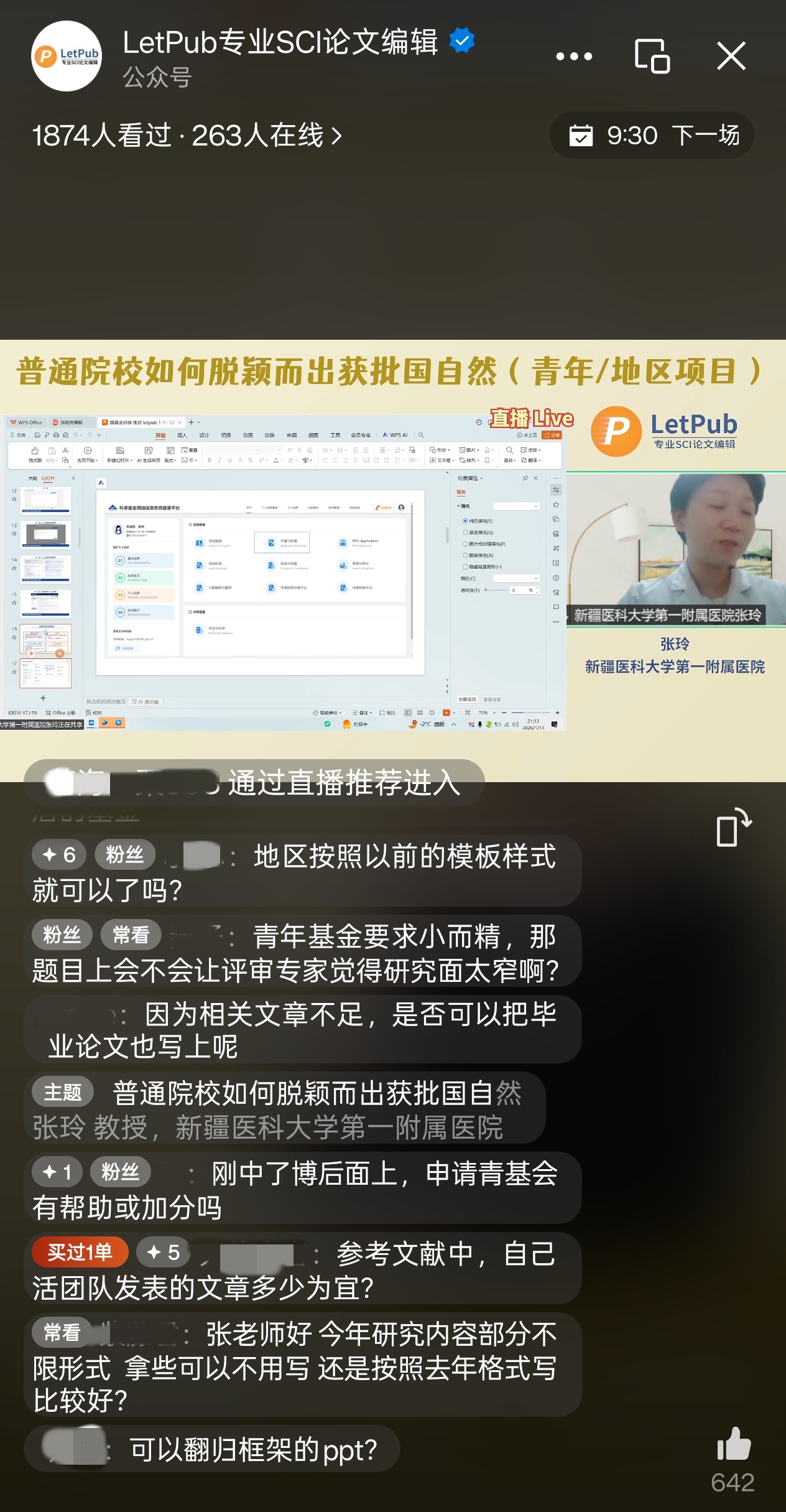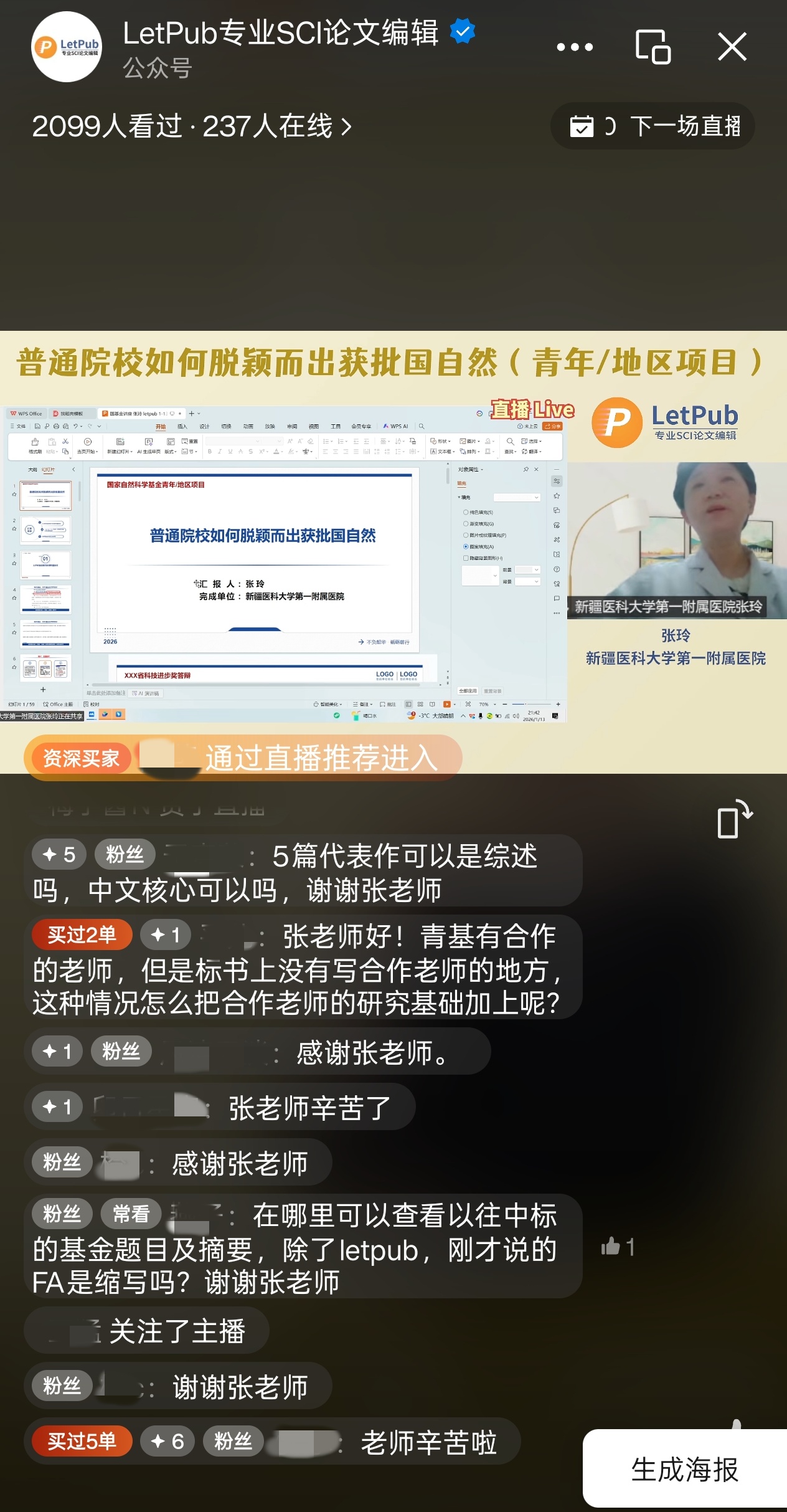 1 月 13 日(周二)19:30,LetPub 特邀新疆医科大学第一附属医院张玲教授,分享其在国自然项目申报过程中的实战经验,从选题逻辑、科学问题凝练、申请书写作到经验反思,为您呈现一条清晰、有效的国自然申报路径。