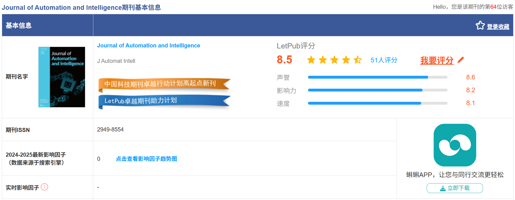 摘要:国产英文学术期刊《Journal of Automation and Intelligence》正式加入“LetPub卓越期刊助力计划”。LetPub将凭借其专业编辑服务和卓有成效的宣传网络,全力支持《Journal of Automation and Intelligence》持续扩大其全球学术影响力版图。